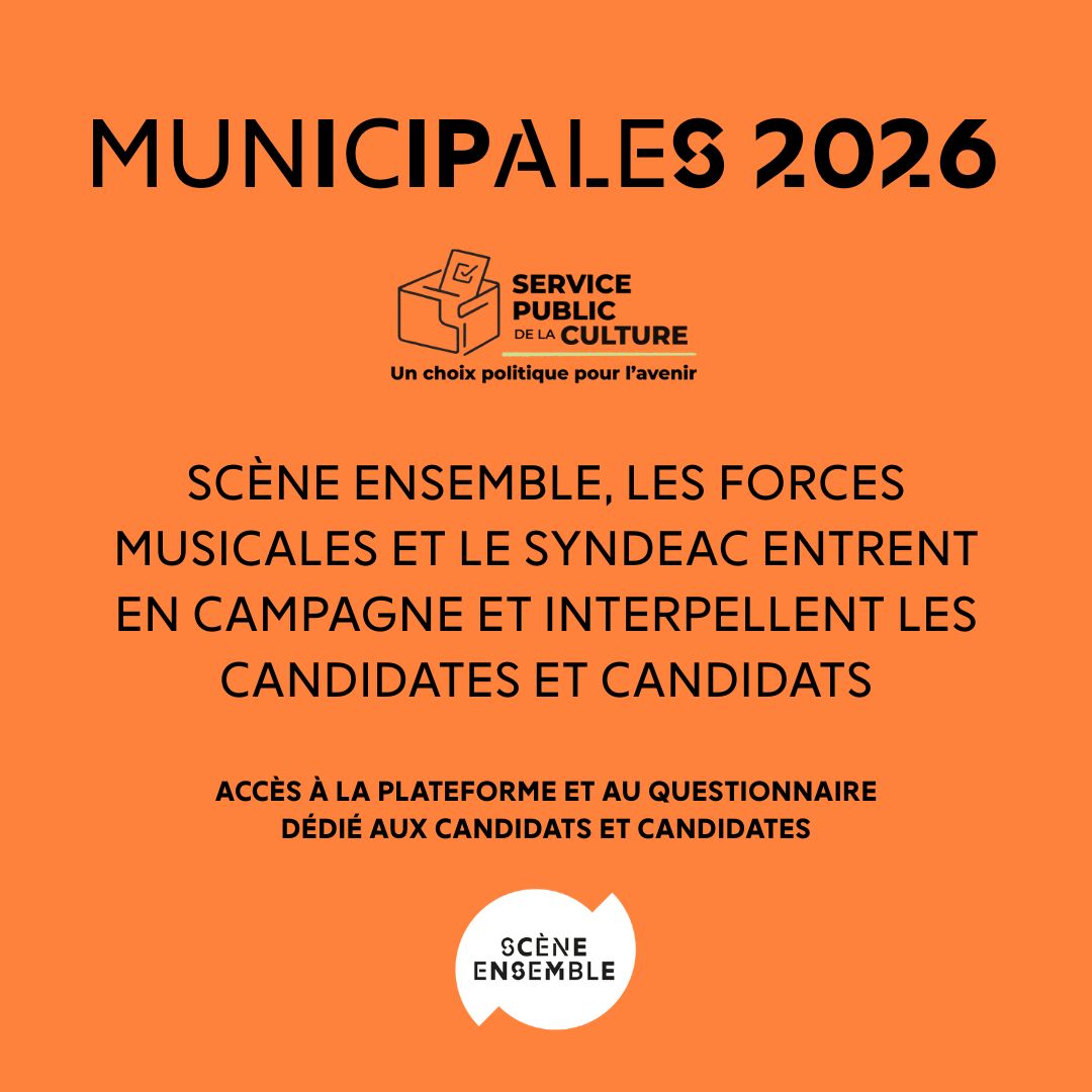 Les candidates et candidats aux élections municipales sont appelés par Scène Ensemble, les Forces Musicales et le Syndeac à répondre à un questionnaire en ligne et à s’engager sur 27 engagements pour le service public de la culture.